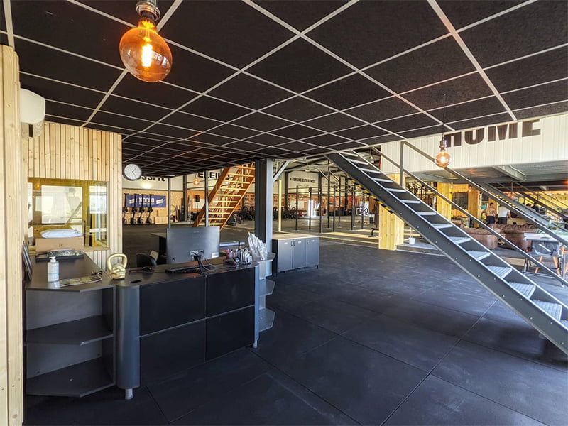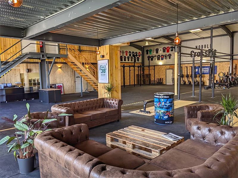 Un complexe 1800m² pour la pratique du CrossFit, du matériel technique dans un cadre industriel et design : Espace entraînement, détente, restaurant, parking et boutique fitness.